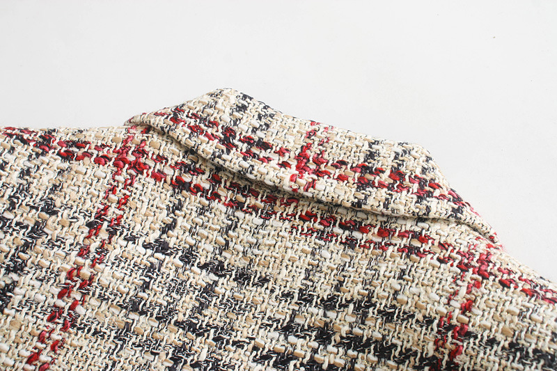 Enhance your look with this stylish blazer that features an eye-catching plaid texture. It's not just a piece of clothing; it's a statement of elegance and sophistication. Whether you're dressing up for a meeting or heading out for brunch with friends, this blazer will elevate your style effortlessly.